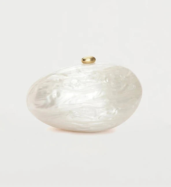 Découvrez la pochette SHÆY unique par sa forme ovale en matière acrylique, une pièce élégante et moderne. Son design raffiné allie sophistication et originalité, parfaite pour sublimer vos tenues lors d’occasions spéciales. Un accessoire incontournable pour un look chic et intemporel.