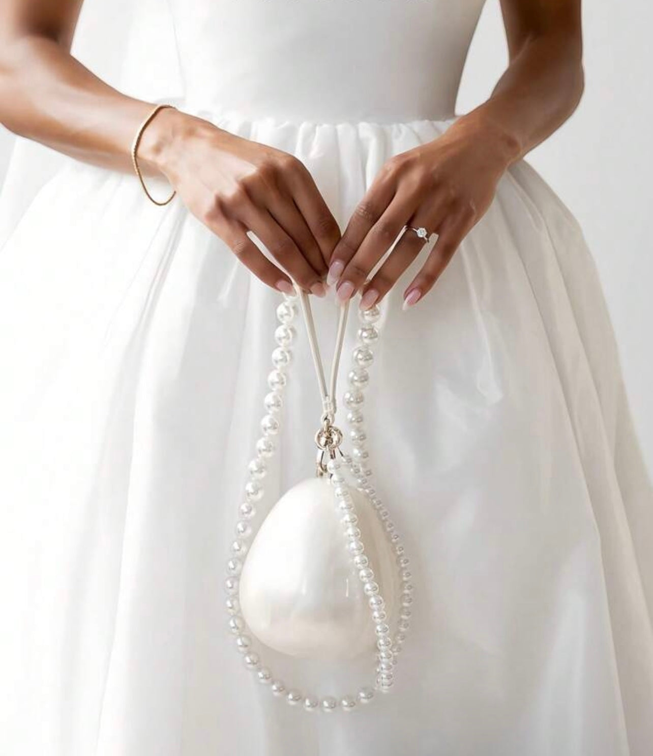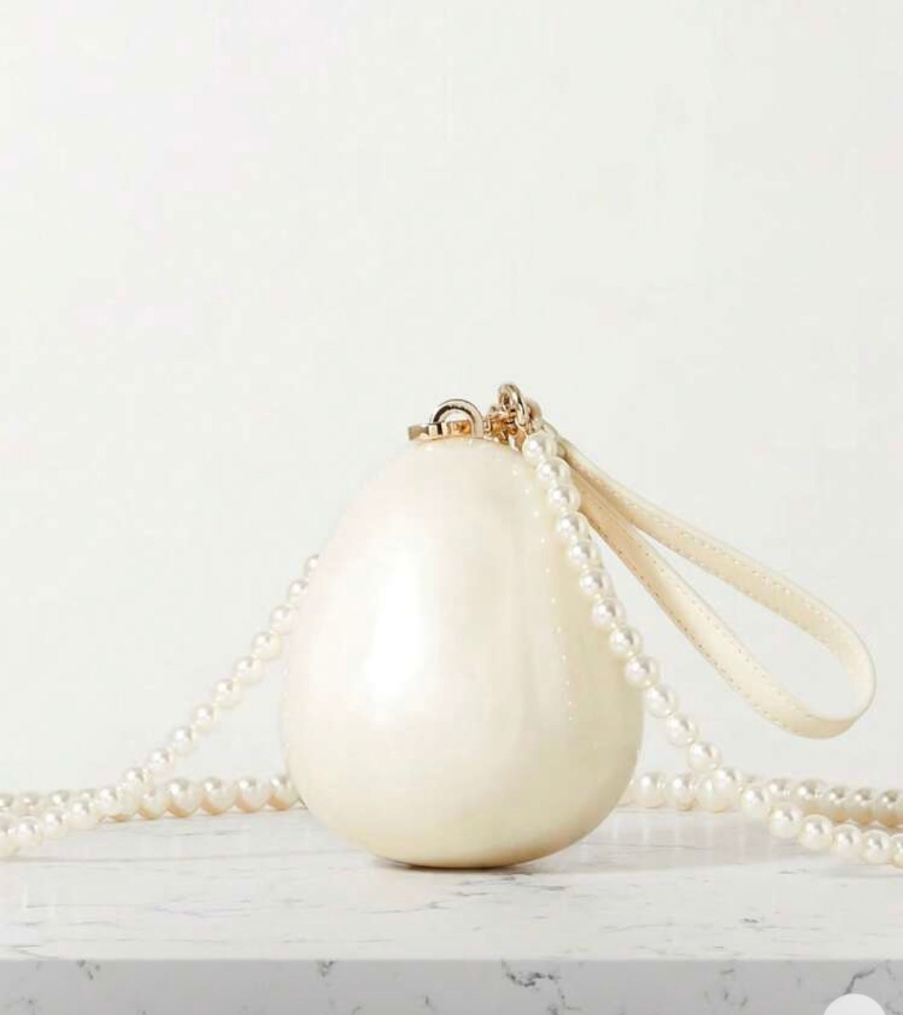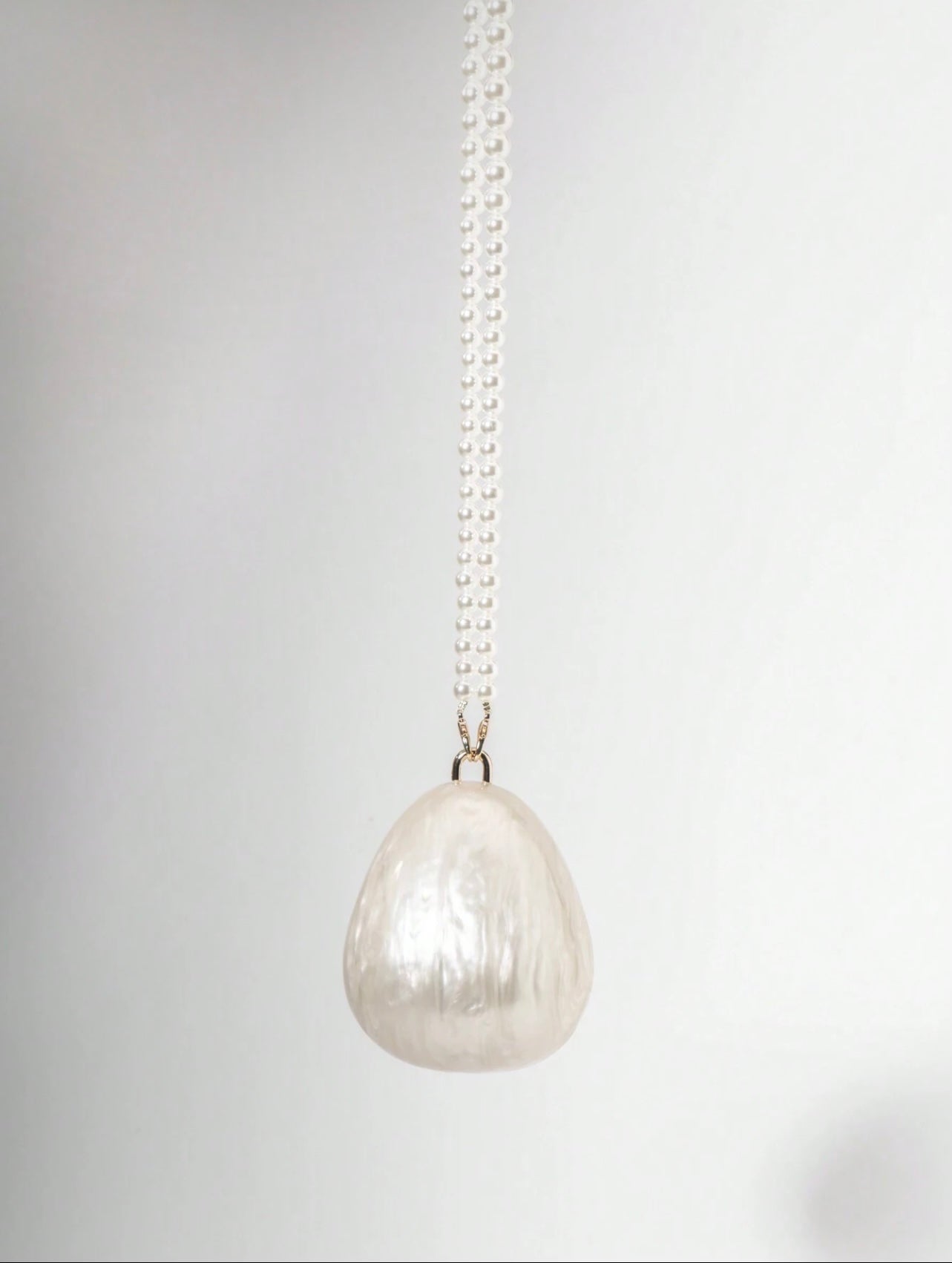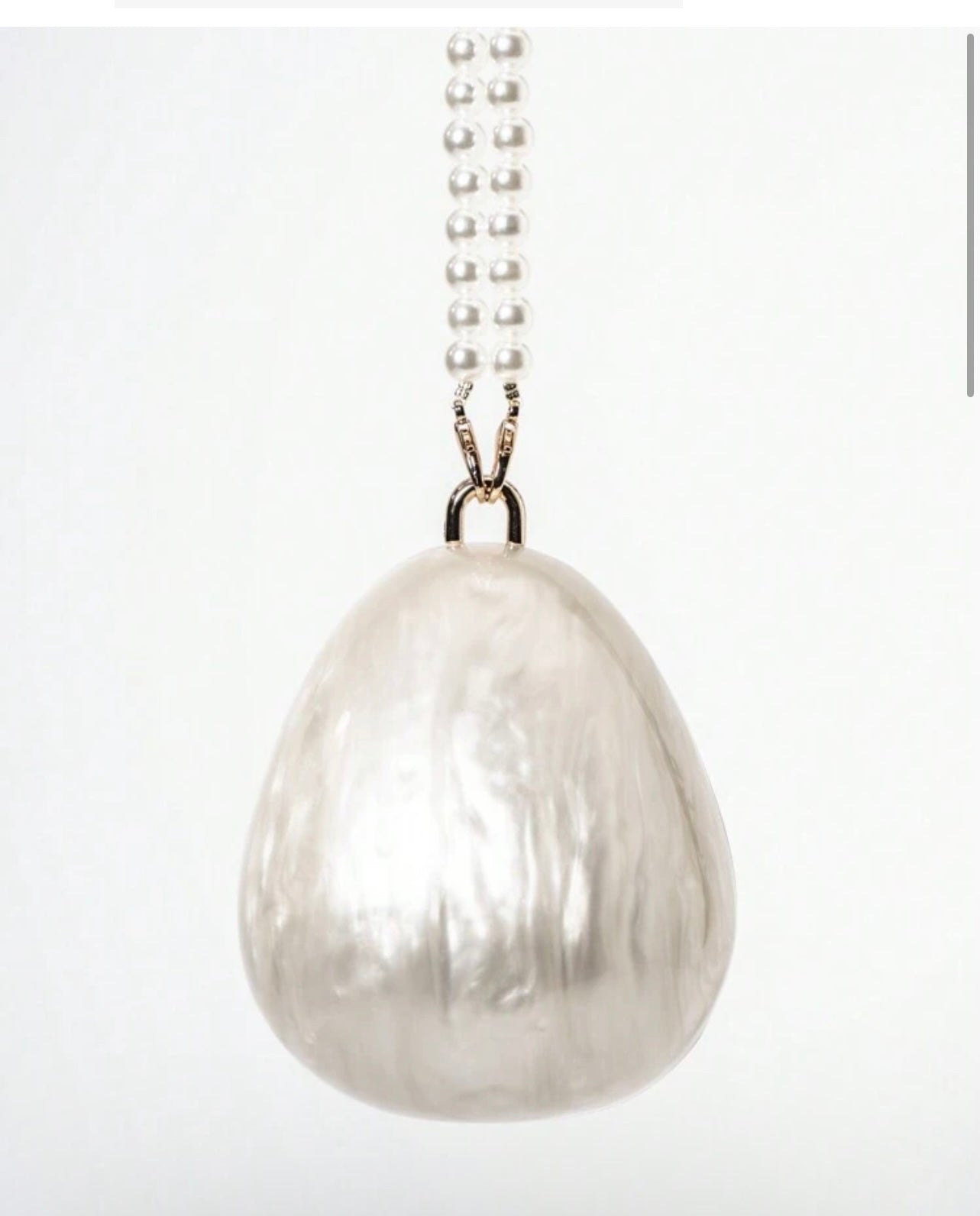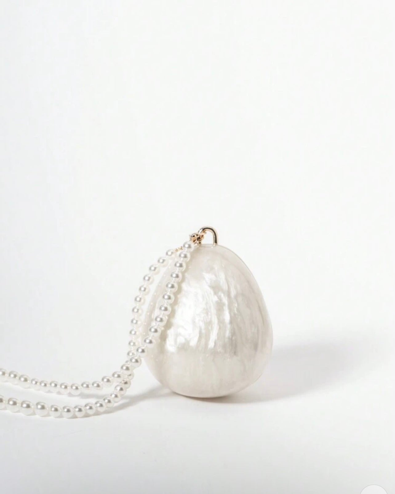 Découvrez le sac EÆYG, ovoïde en acrylique laitière, alliant modernité et élégance. Sa forme unique et sa finition brillante se complètent parfaitement avec une petite sangle perlée, ajoutant une touche délicate et raffinée à votre look. Un accessoire parfait pour sublimer votre tenue.